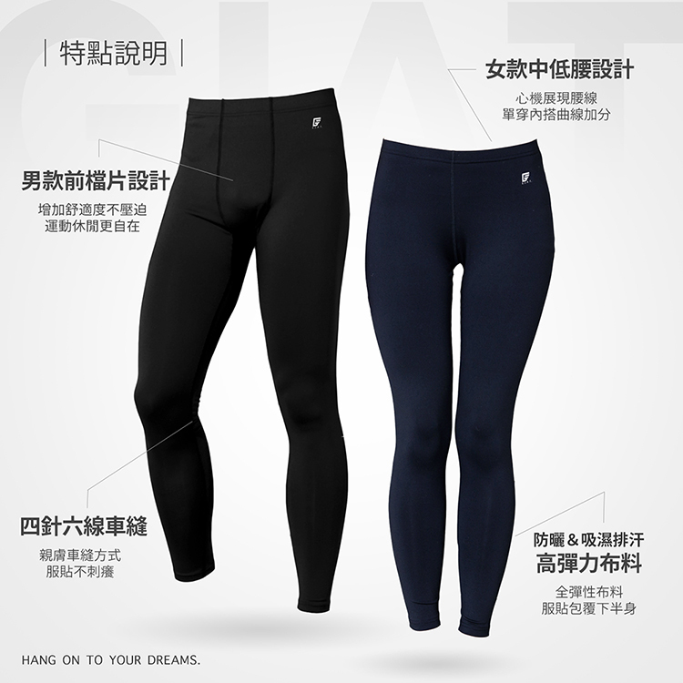 台灣製造的UPF50+吸濕排汗彈性長褲/內褲,