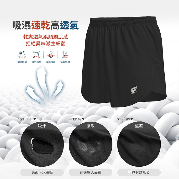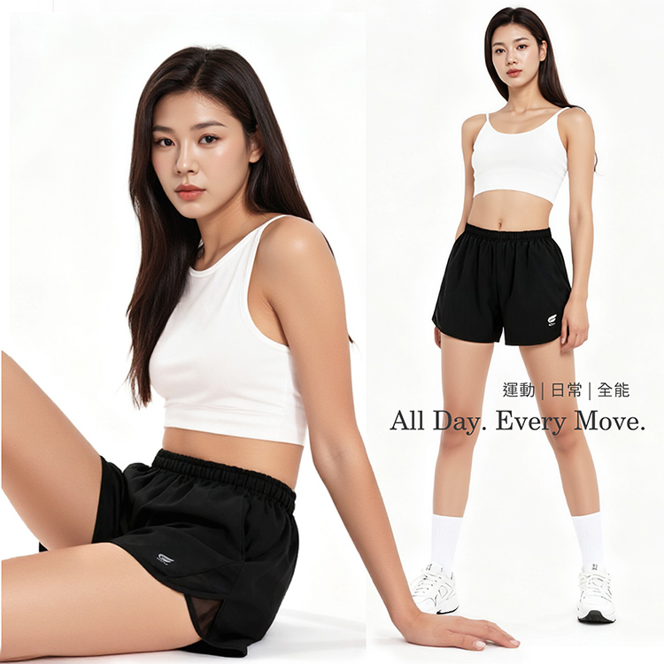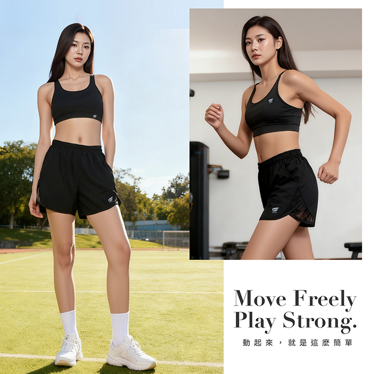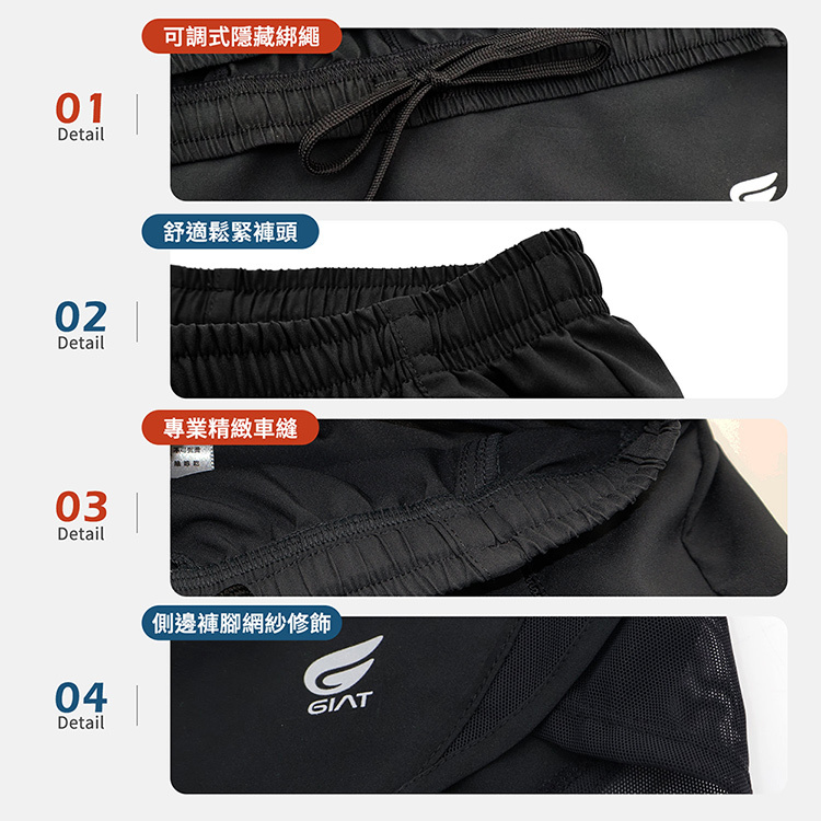 褲角加入 透氣網紗拼接設計,排汗散熱更快速,