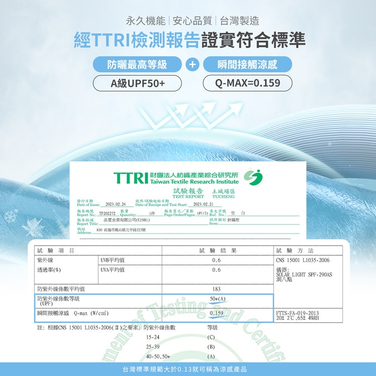 .機能布料 防曬涼感一次足