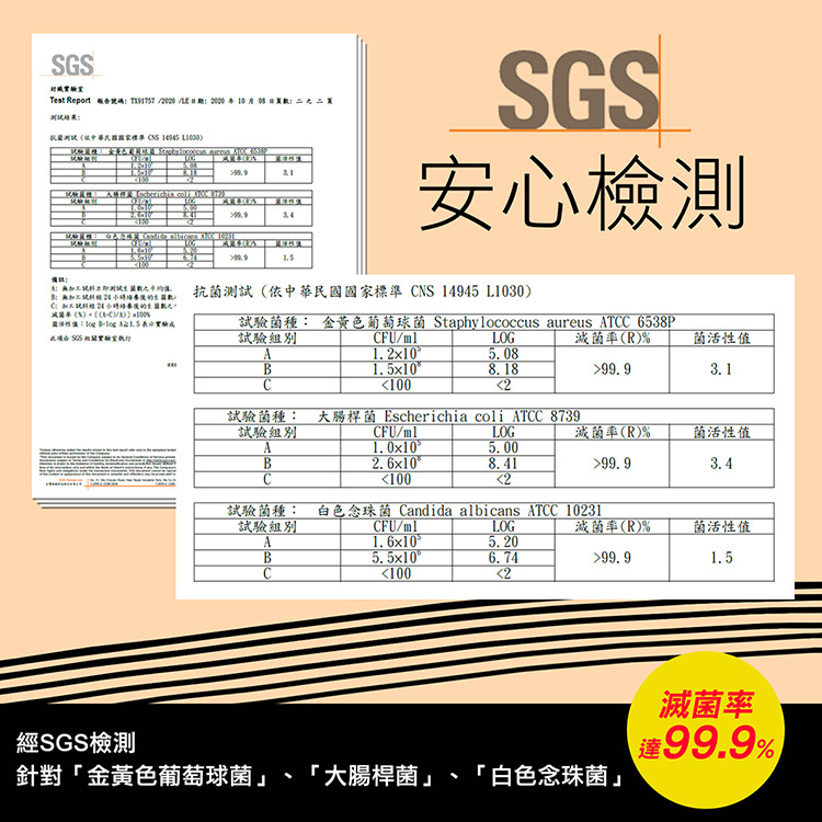 ✔SGS認證抗菌