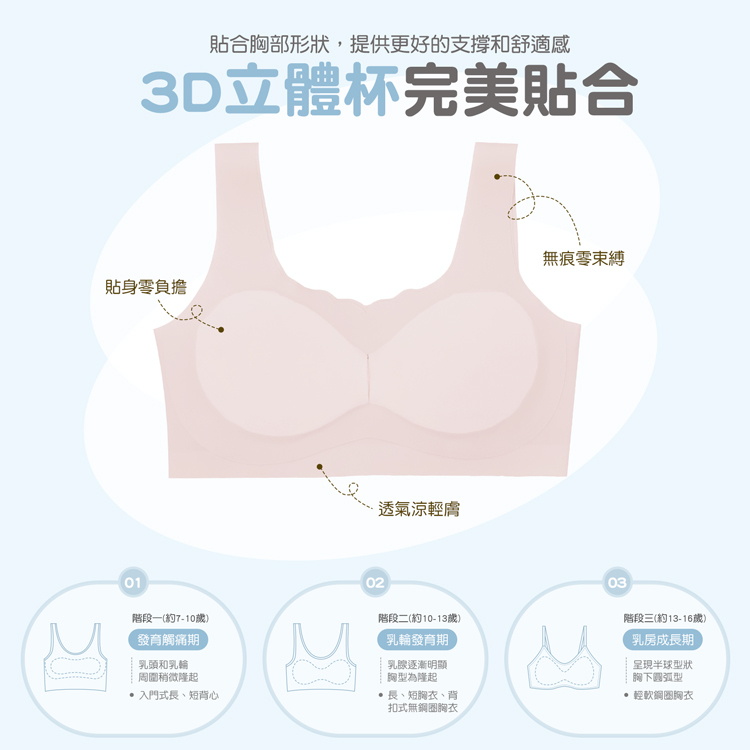 帶有撐托能力的少女胸衣 讓胸部有足夠發育空間