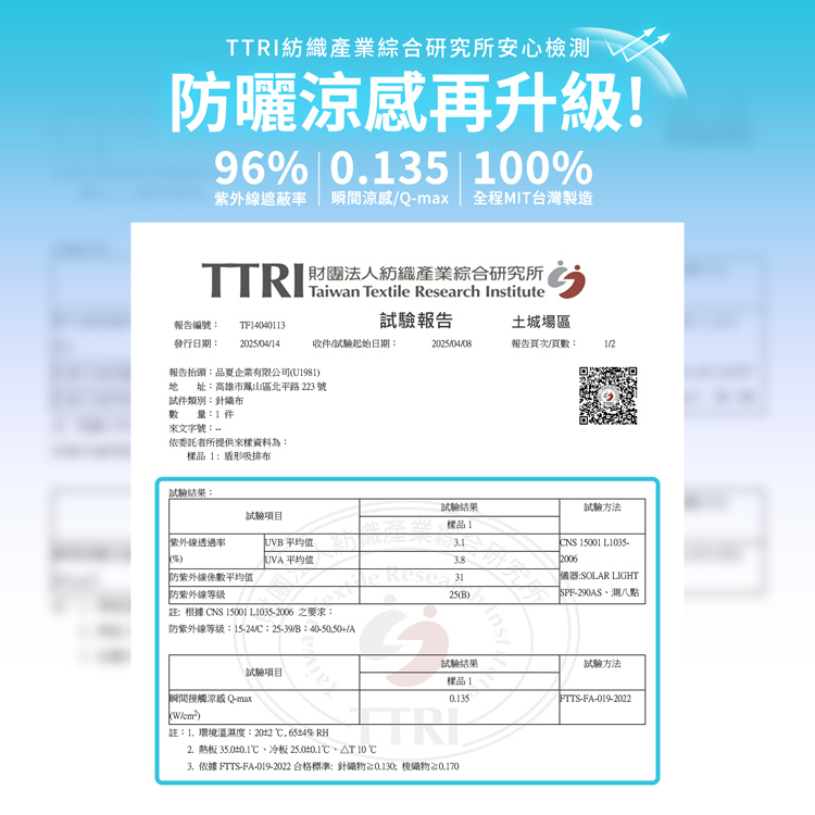 ✔Qmax 涼感係數 0.135,降溫透氣,動起來也不悶