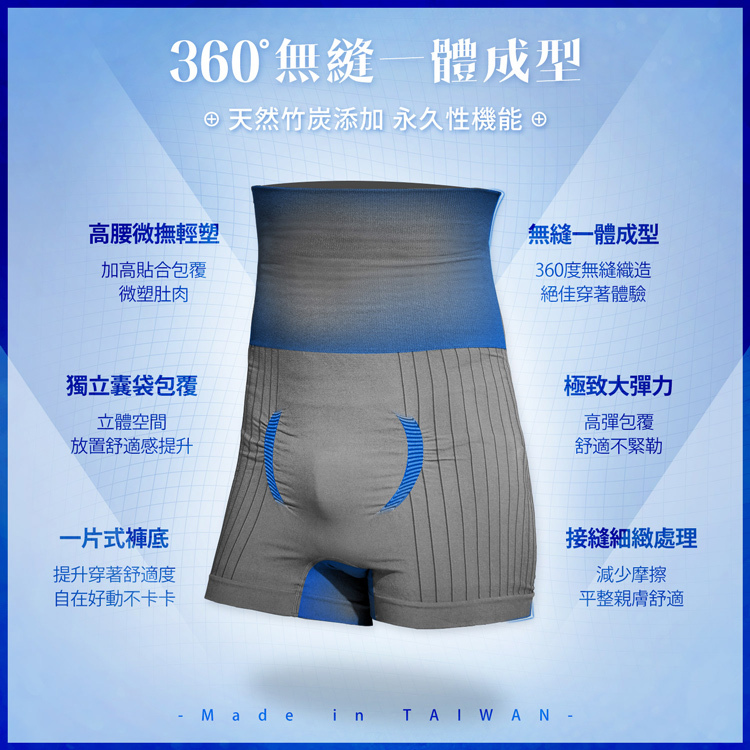 GIAT超高腰塑腰男貼身平口塑身/內褲兩用二合一