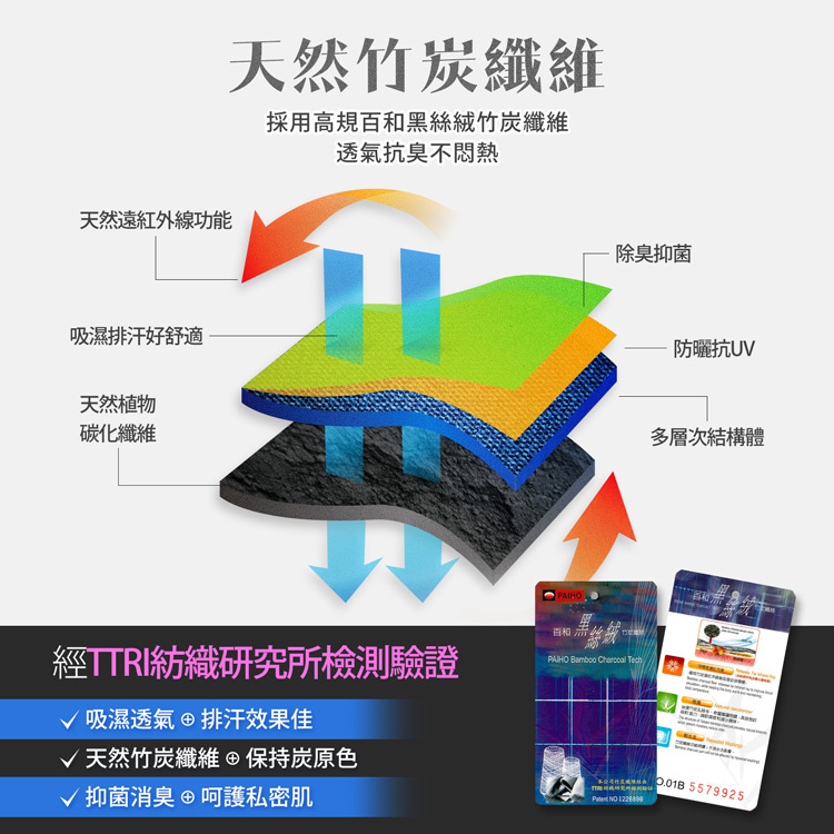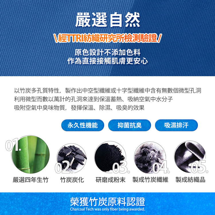 材質:43%聚酯纖維(竹炭) 43%尼龍 14%彈性纖維