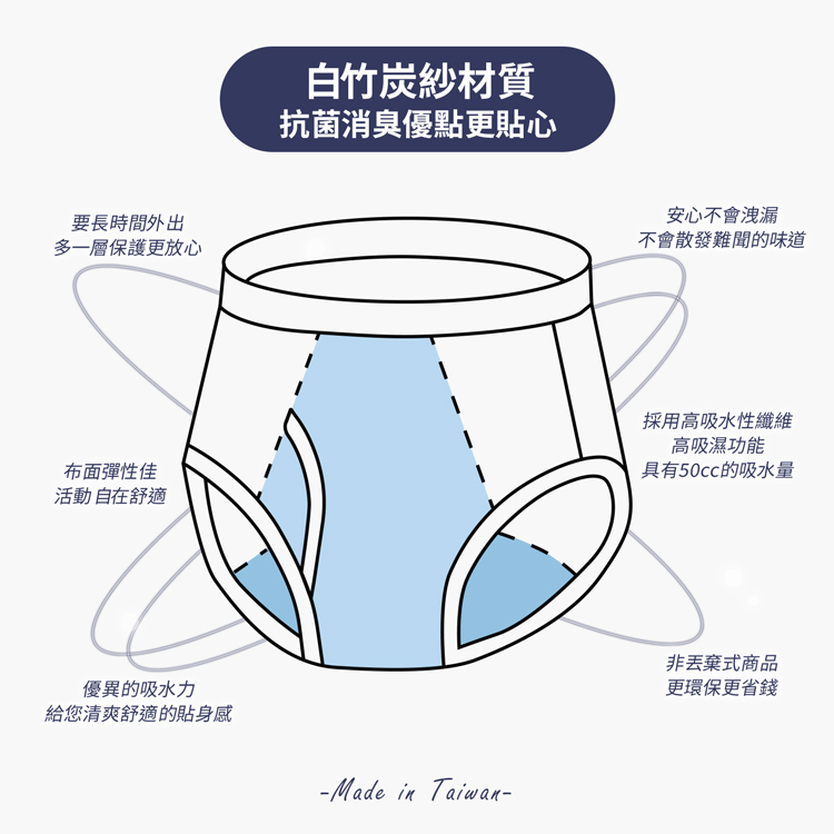 嚴選【高吸水性素材】淺褲----3層式吸水結構,