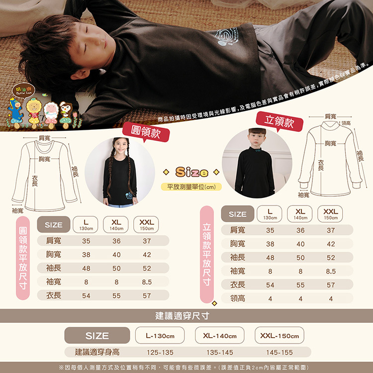 尺寸:L/130、XL/140、XXL/150(如圖標示)