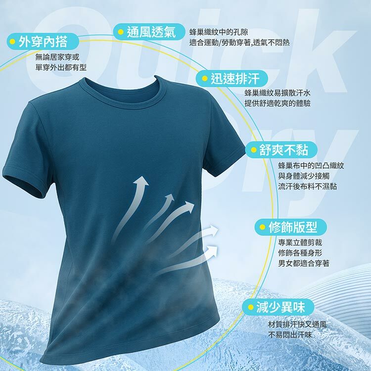 速乾排汗科技:吸濕排汗,迅速蒸發汗水,遠離黏膩感