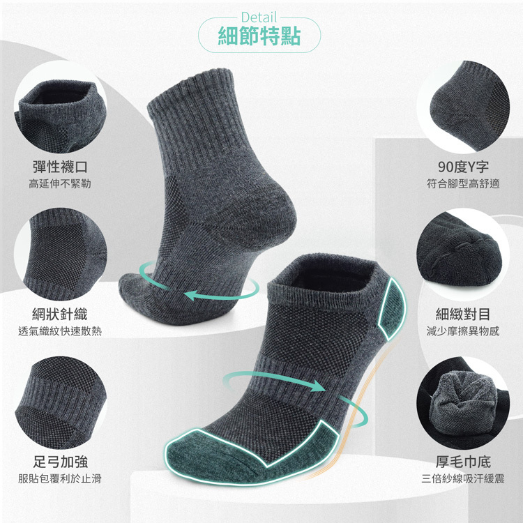舒適厚實足弓氣墊+真石墨烯+抗靜電紗