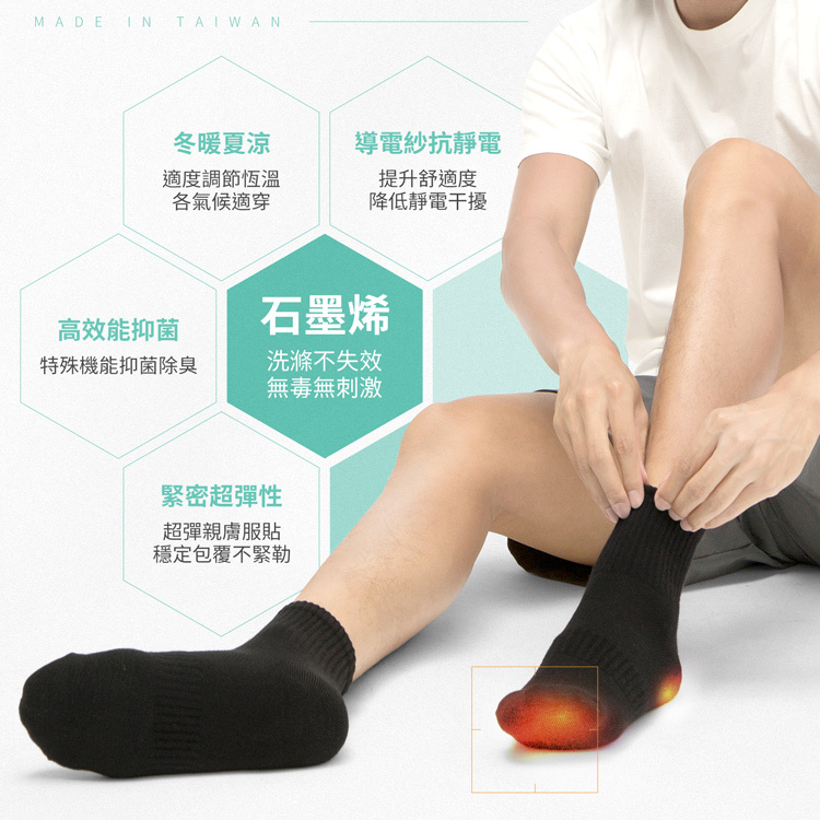 舒適厚實足弓氣墊+真石墨烯+抗靜電紗