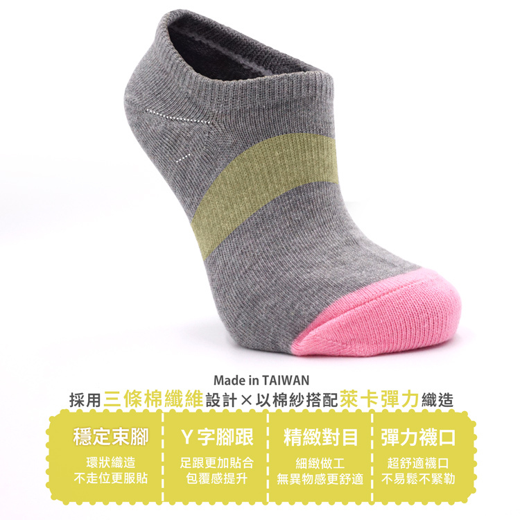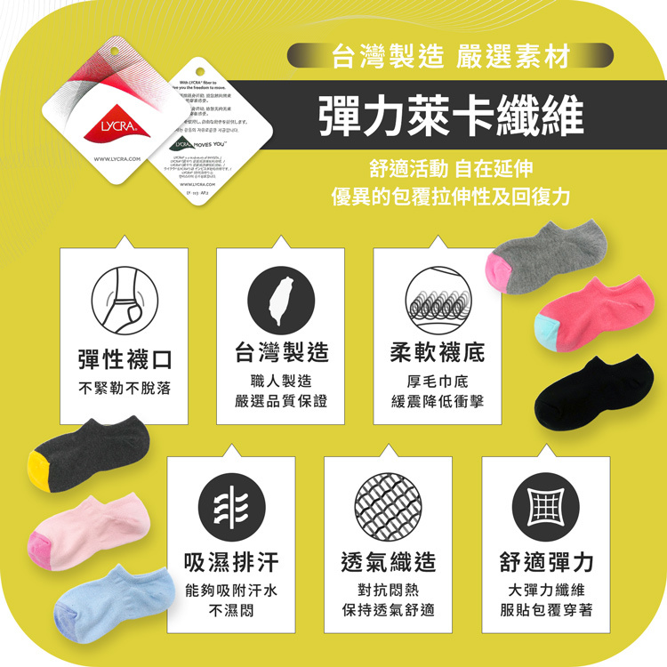 優質台灣製襪工藝搭配高品質的棉料與萊卡混紡