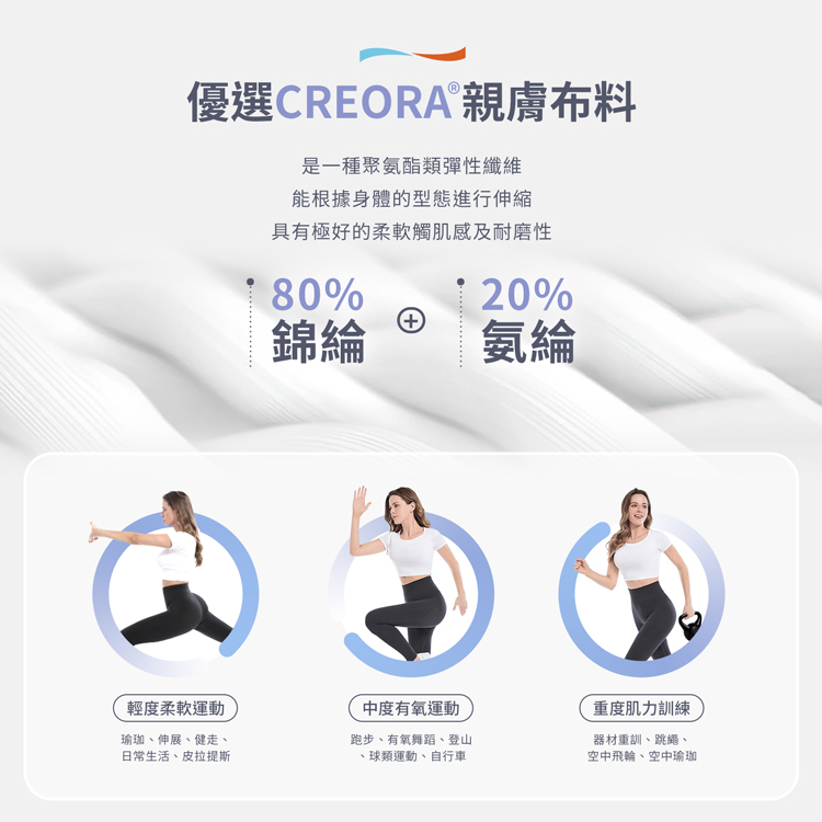 採用四面彈力材質,拉伸自由不緊繃,深蹲、瑜伽、健走都毫無壓力。