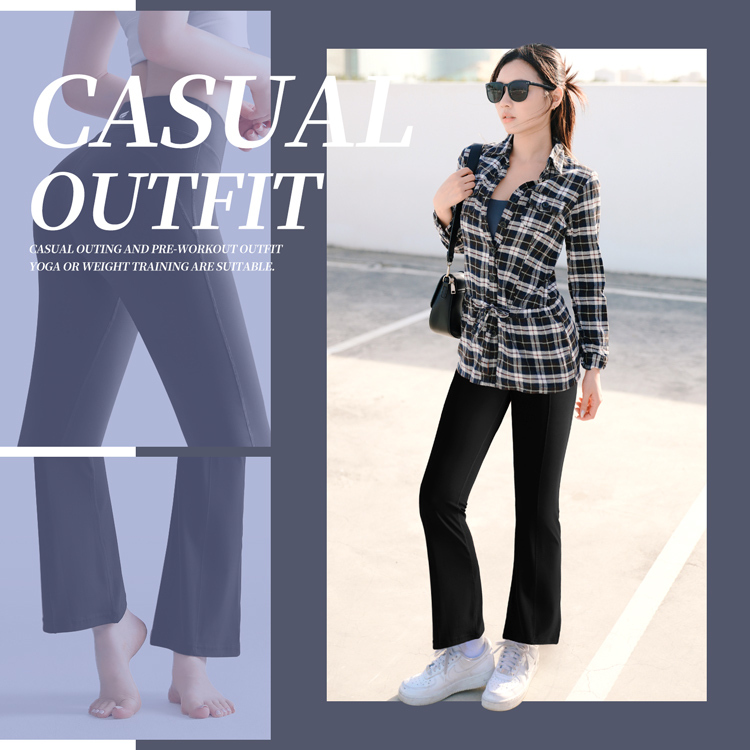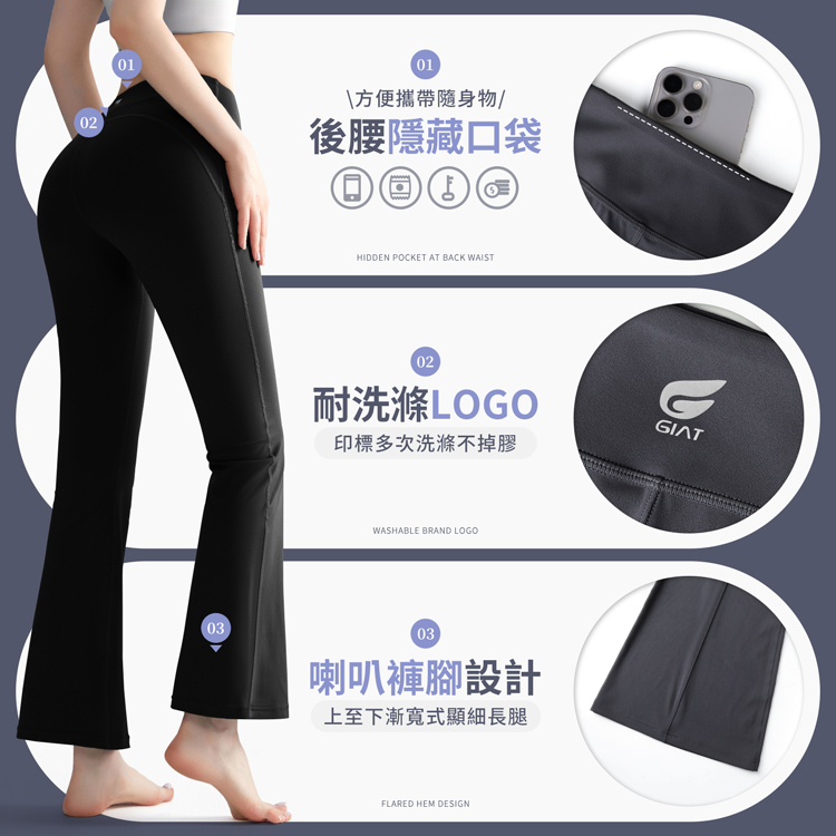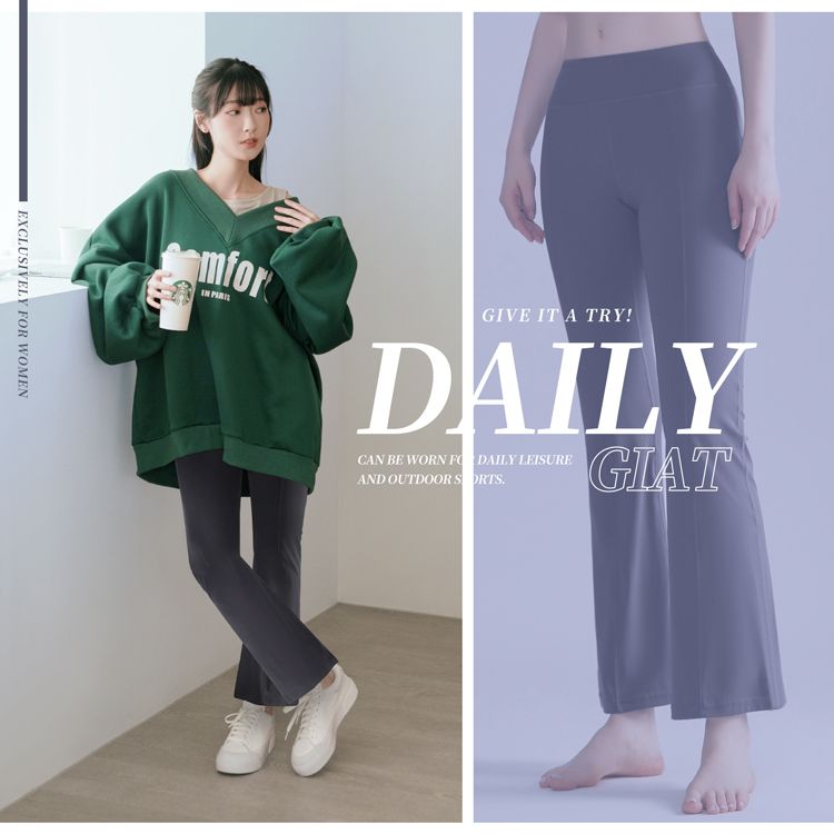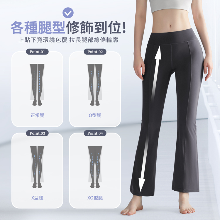 高腰包腹設計+修身微喇叭版型,完美修飾腿型與臀部曲線,運動也能穿得像伸展台走秀!