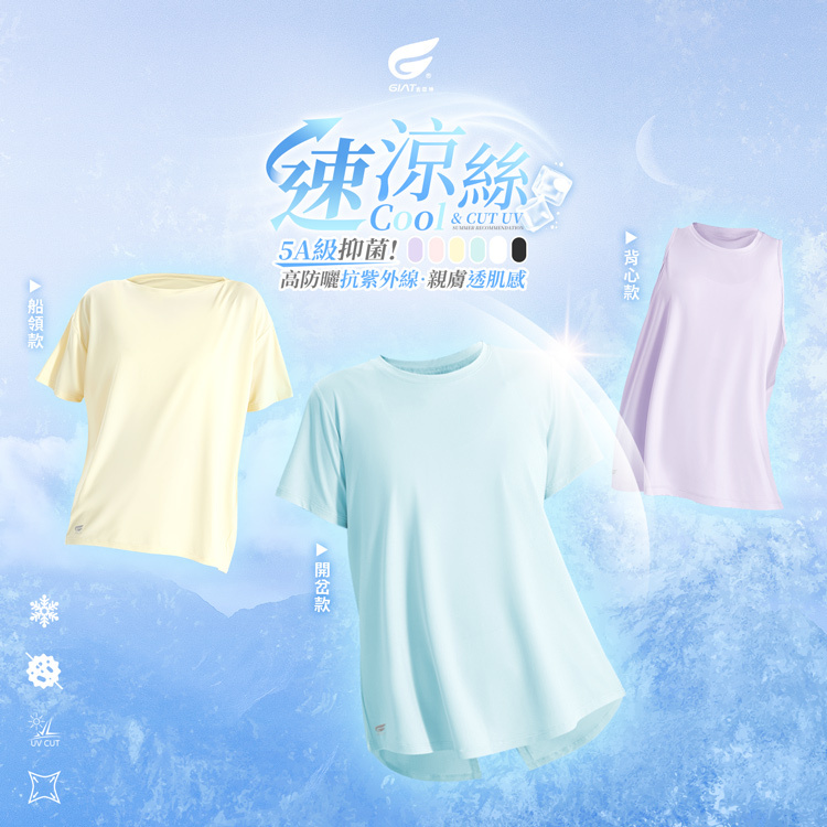 無論是運動或休閒,GIAT速涼絲感罩衫背心結合了速涼科技與5A抑菌功能,