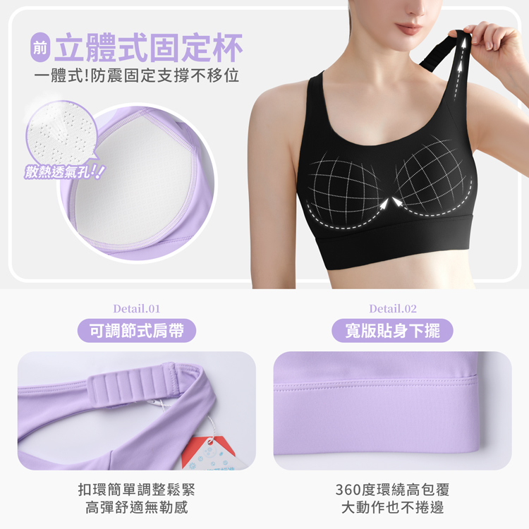 可調式設計 : 靈活調整肩帶及胸圍,完美貼合各種體型,提供最佳的支持性與舒適感。