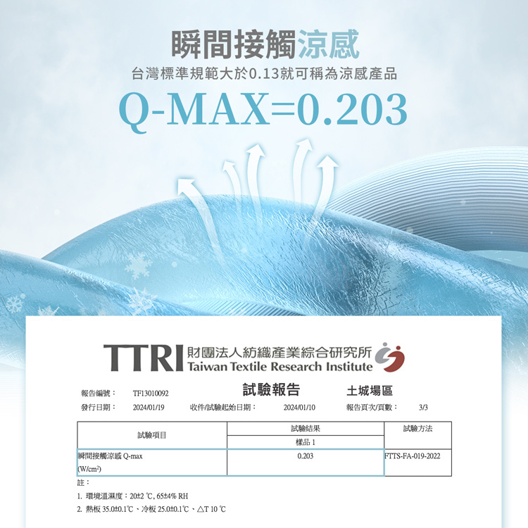 輕涼透氣:Q-max達0.203 涼感高透氣,不再擔心炎夏悶熱的天氣。
