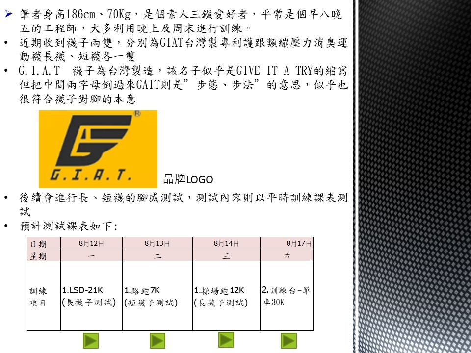 身高186cm、70Kg,是個素人三鐵愛好者,平常是個早八晚五的工程師,大多利用晚上及周末進行訓練。