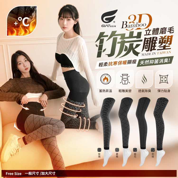 3D奈米竹炭雕塑內搭磨毛九分褲