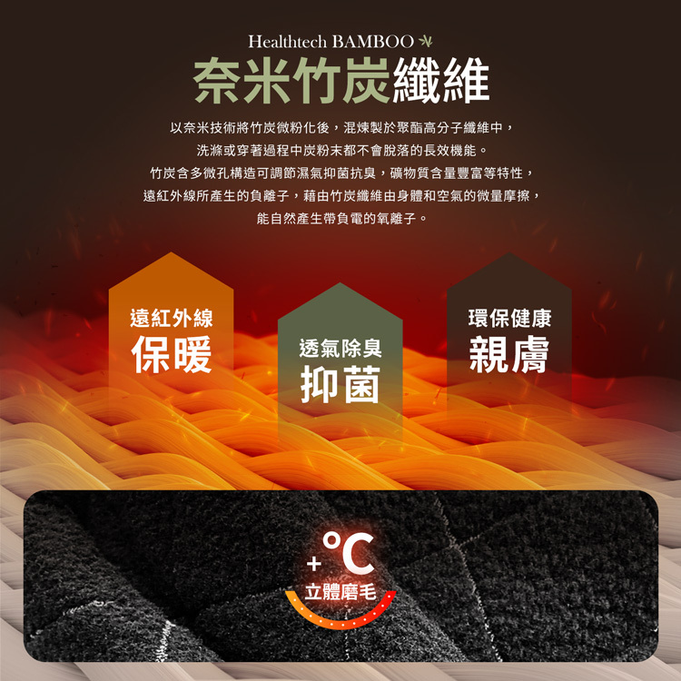 奈米竹炭科技材質 遠紅外線鎖溫透氣抗臭